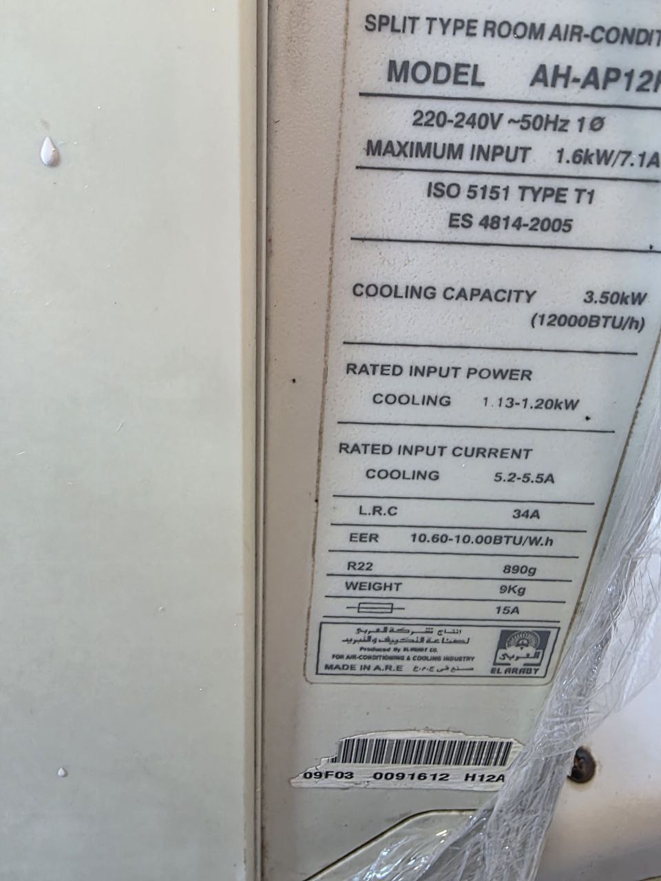 كود 5579 تكييف شارب حصان ونص بارد . تغطية مساحة متوسطة: مناسب لمساحات حوالي 12–18 متر مربع (غرفة متوسطة