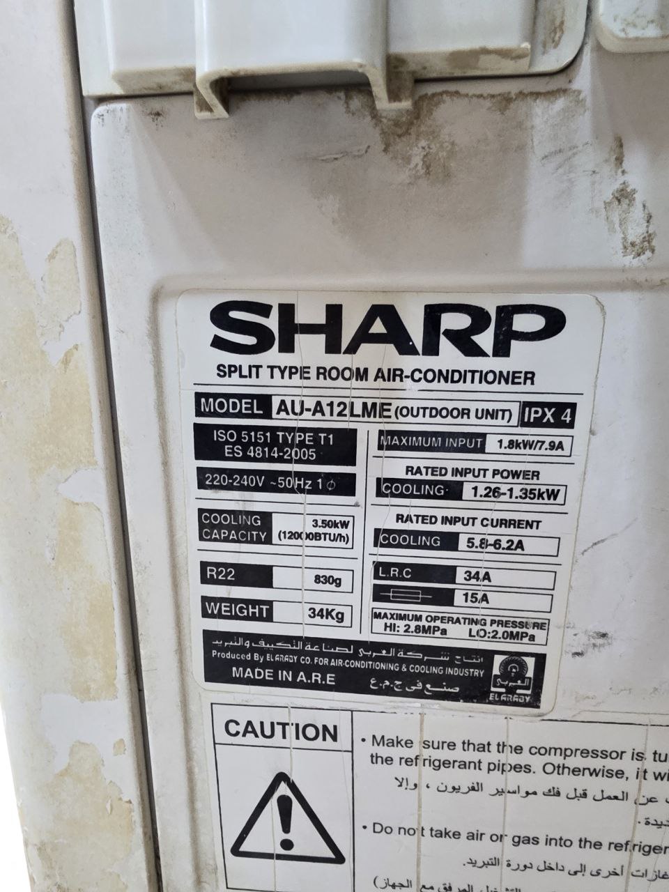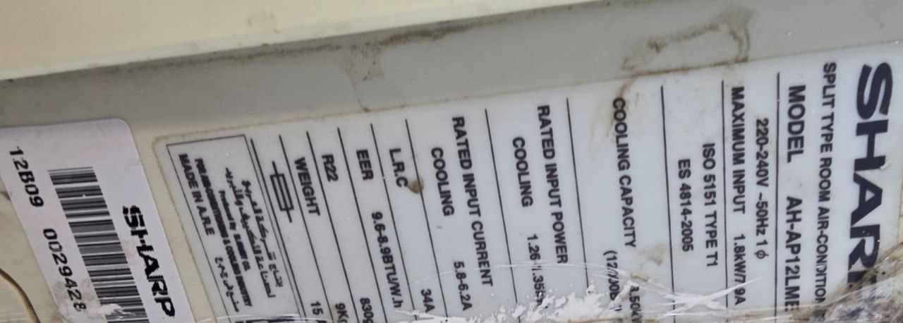 كود 5600 بارد فقط تكييف شارب حصان ونص بارد ساخن . تغطية مساحة متوسطة: مناسب لمساحات حوالي 12–18 متر مربع (غرفة متوسطة