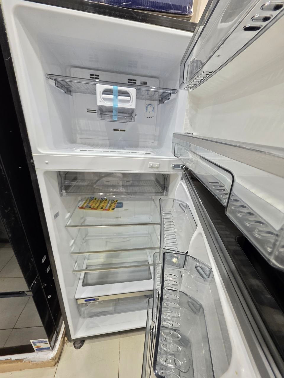 تصميم أنيق باللون الأسود، مع أبواب مزدوجة (2 باب) — يعطي مظهر عصري للثلاجة.