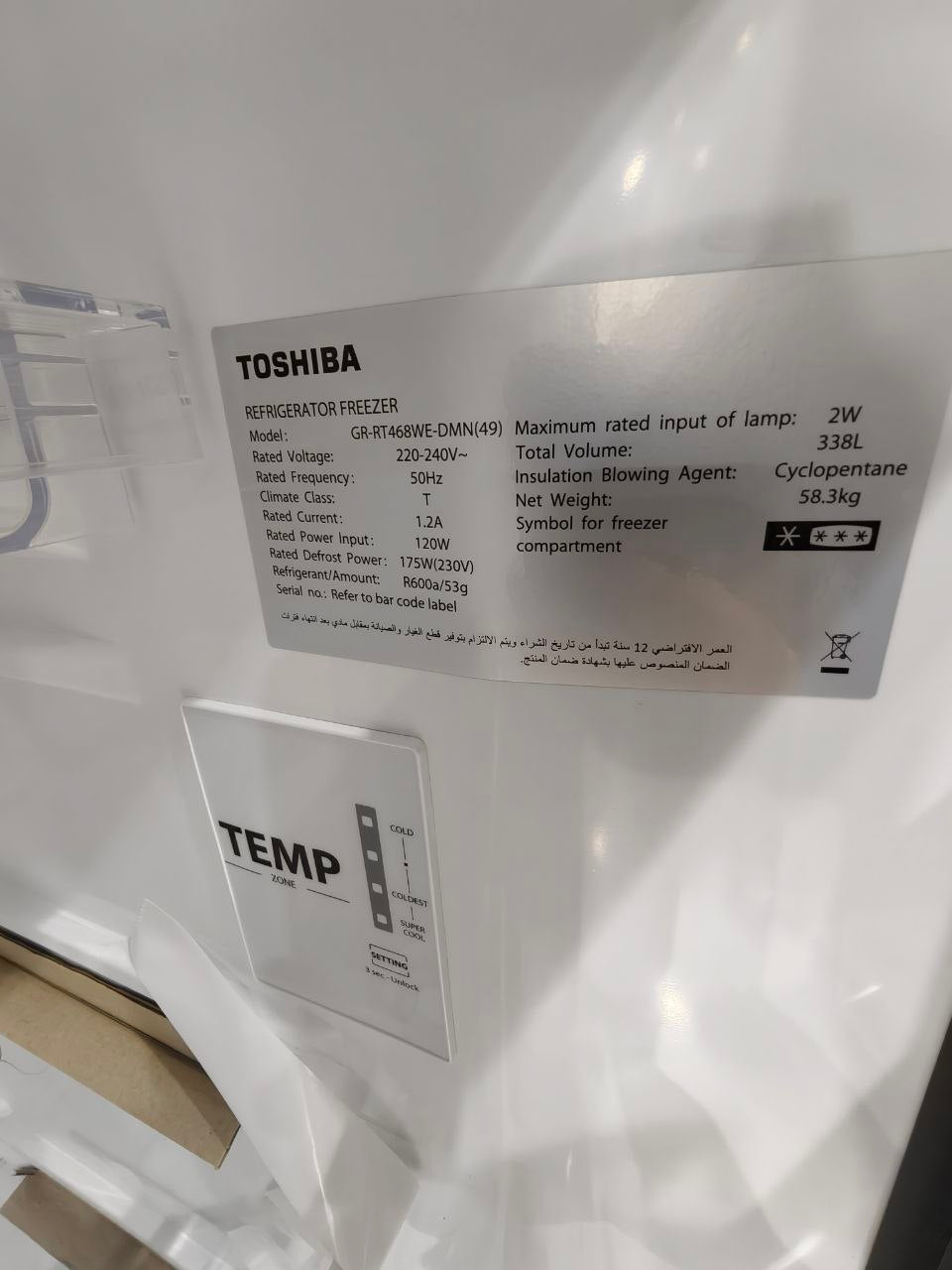 كود 5818 ثلاجه توشيبا 338لتر بواقي تصدير