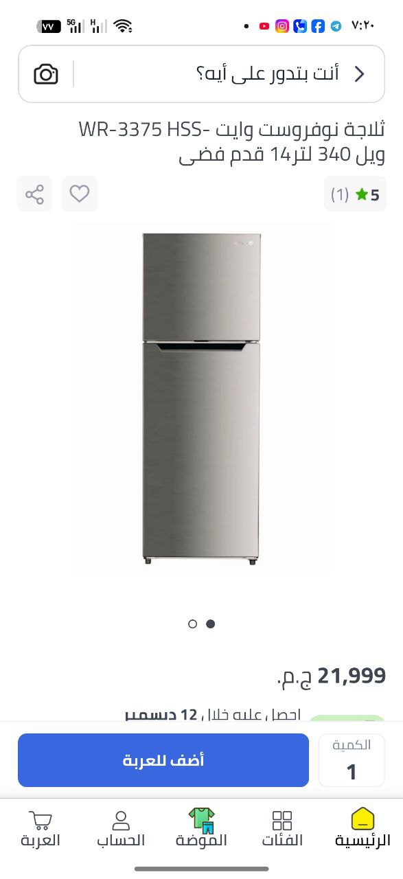كود 5862b ثلاجة وايت ويل 340لتر كسر زيرو استعمال بسيط