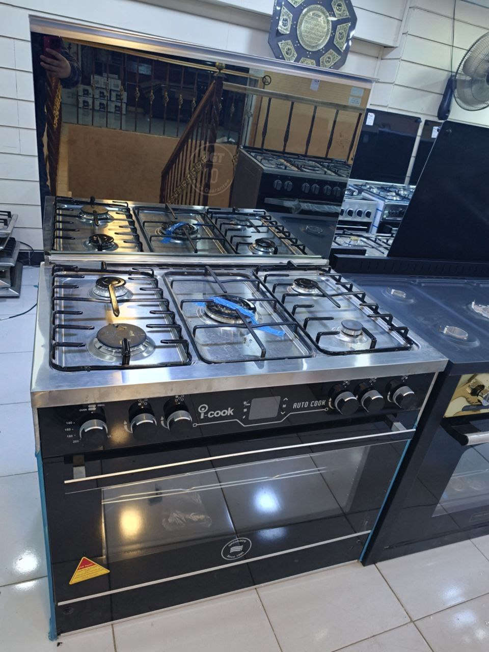 كود 5920 بوتاجاز يونيون اير، 90 × 60 سم، 5 شعلة، أمان كامل، اي كوك اوتو كوك، ديجيتال، استانلس × أسود – فرز ثاني بالكرتونه C69SS-GC-511-ICPS2F-IS-2W-AL
