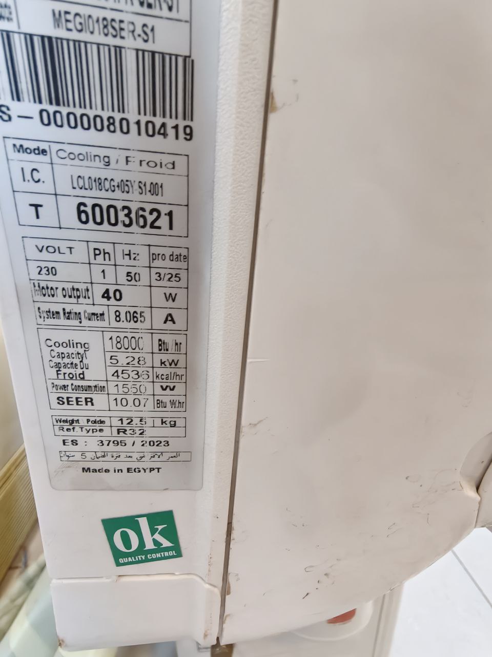 فريون: يستخدم غاز R32 الأكثر كفاءة واقل استهلاك للطاقة.