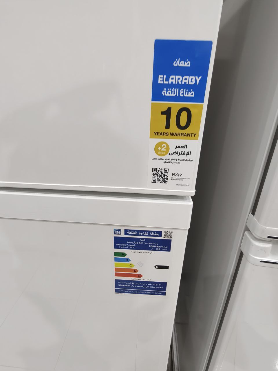 ثلاجة توشيبا العربي، نوفروست، 304 لتر، أبيض ضمان 10سنين